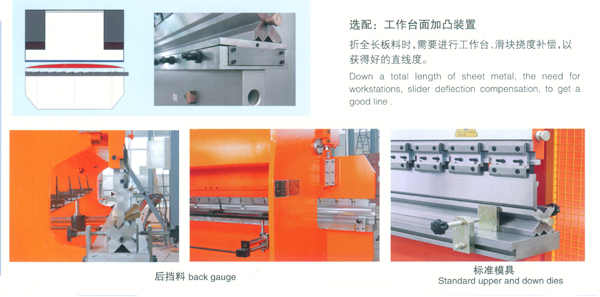 4、上模配有撓度補償裝置,250噸和長度4000mm 以上機床可采用下撓度補償機構。